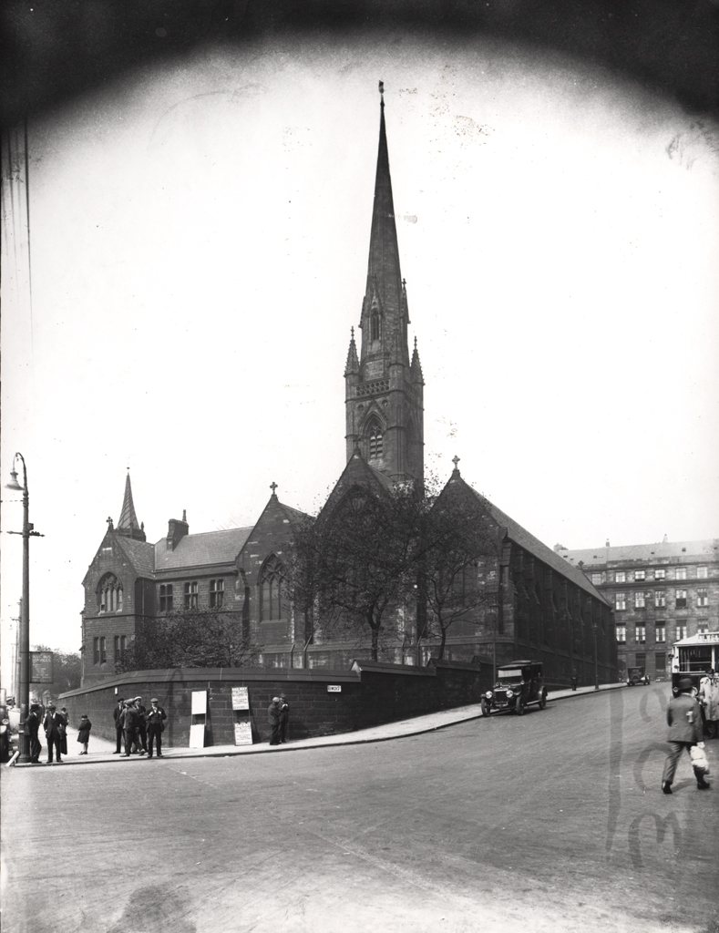 Tower completed c. 1872 by A.M. Dunn and E.J. Hansom. Coursed squared sandstone