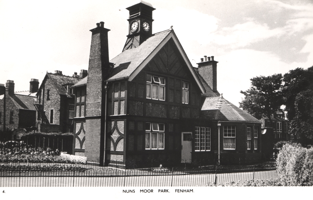 Nun's Moor Park is at the corner of Studley Terrace and Brighton Grove. The Park House (lodge) is very attractive, and there is a clock mounted in a small green painted tower. The clock has four dials which are illuminated at night. The clock is weight friven and requires winding every week. The clock chimes the quarters and strikes the hours. The old chiming clock was removed when an electric driven mechanism was installed by William Potts of Leeds in 1984. The bells remain in the tower. Shown on Ordnance Survey second edition as a lodge.