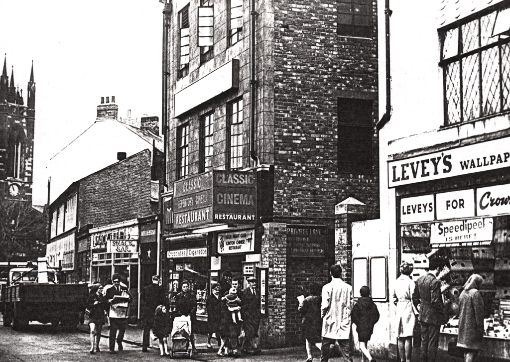 The Tatler News Cinema was originally a café owned by Louis Bertorelli. It had an additional entrance on Haymarket, opposite the bus station. In March 1936 architect J. Newton Fatkin submitted plans to alter the café into a 488 seat newsreel cinema with a café above. The Tatler came under the control of E.J. Hinge. The cinema was decorated by Fred A. Foster of Nottingham. The side walls were decorated with horizontal stripes of cream, silver, orange and old rose with a dado of deep rose and silver. Between vertical pilasters there were rectangular panels of abstract painting. The ceiling had a central panel of rose and cream, flanked by silver moulded plaster coves. The ceiling and ante-proscenium grilles were lit by concealed lighting in the pilasters and above the exit doors. The curtains were cream satin with gold trim. The café above the cinema was decorated in cream, grey and stippled silver with black and red carpet and curtains. In July 1964 the Tatler was bought by Classic Cinemas Ltd, who fitted a new cinemascope screen, Projectomatic system and redecorated the café. By November 1969 the Tatler was one of only four news theatres left in the country. From September 1970 the Classic, as it was now named, became a cinema club for members only. Seated were reduced to 418. From November 1971 there was to be a monthly striptease. The cinema was renamed the Tatler Cinema Club in February 1972. In November 1979 the cinema opened to the general public again as the Classic. It closed on 24 August 1980. Shops and a bank now occupy the site.